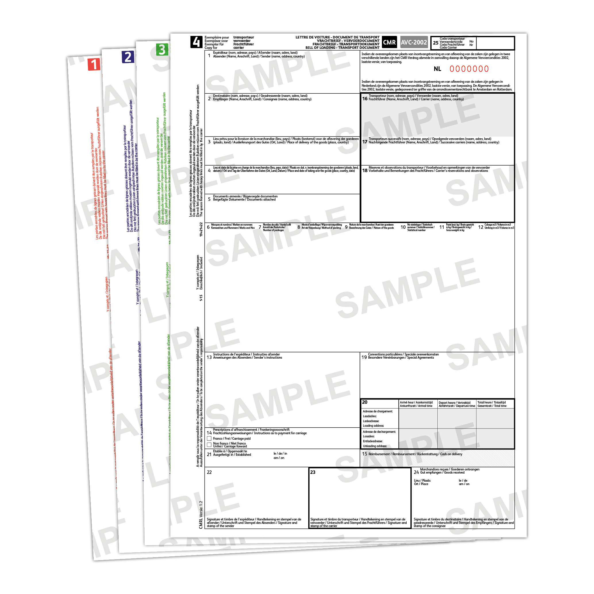 De CMR vrachtbrief is aan de voorzijde viertalig (Frans, Nederlands, Duits, Engels) en op de achterzijde van alle bladen voorzien van een vertaling in het Engels, Italiaans en Spaans.