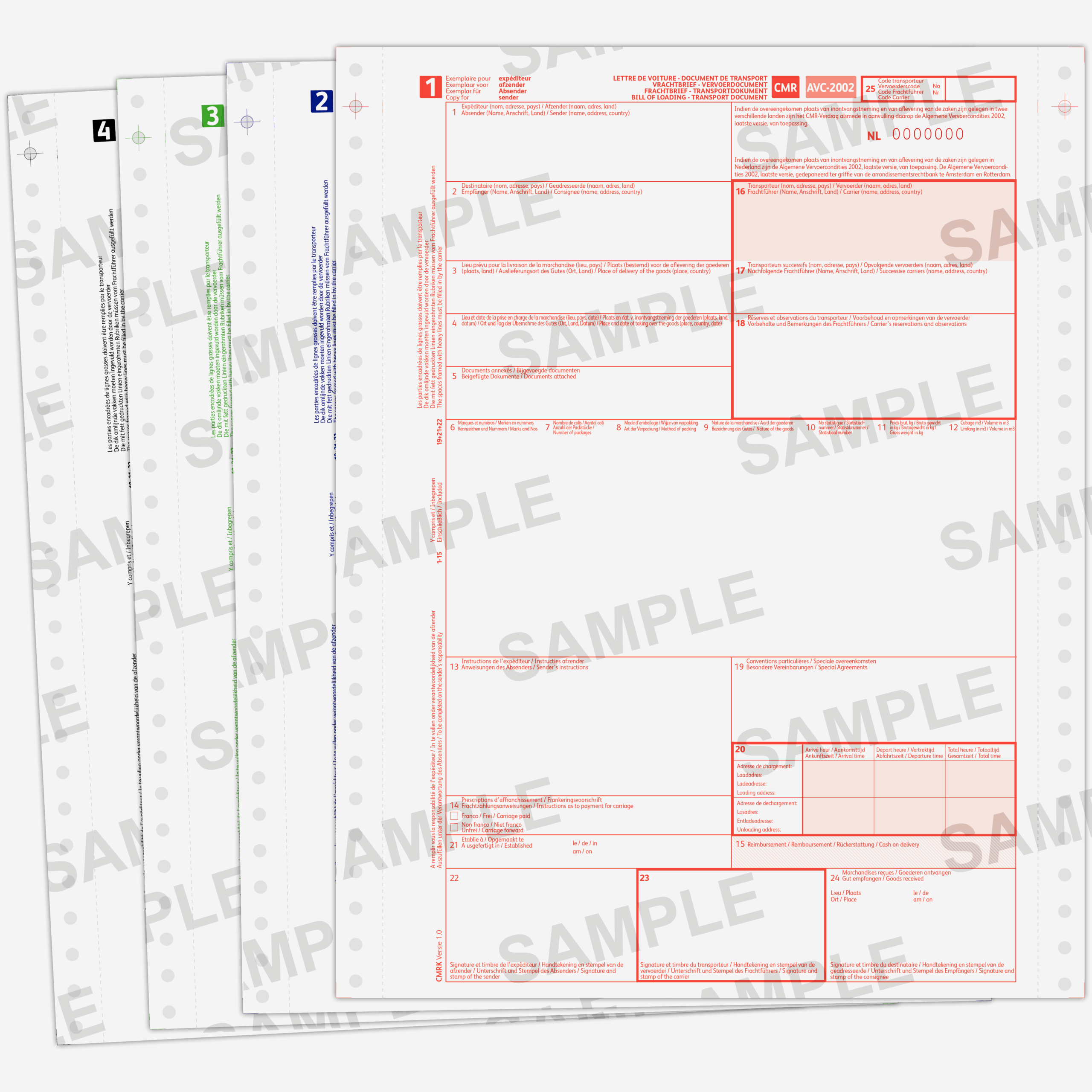 CMR Vrachtbrieven Kettingformulier 4 voud-1,2,3,4 genummerd – 500 sets